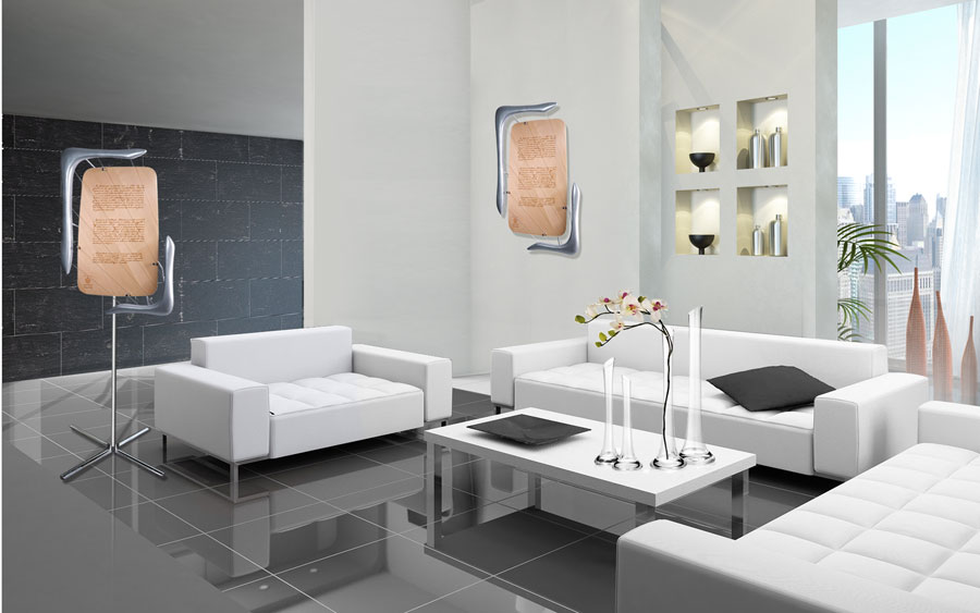 Rappresenta l'interpretazione più diretta di uno strumento musicale; la tavola armonica rimane sospesa alle corde di una moderna arpa, che richiama sensualmente alla musica.